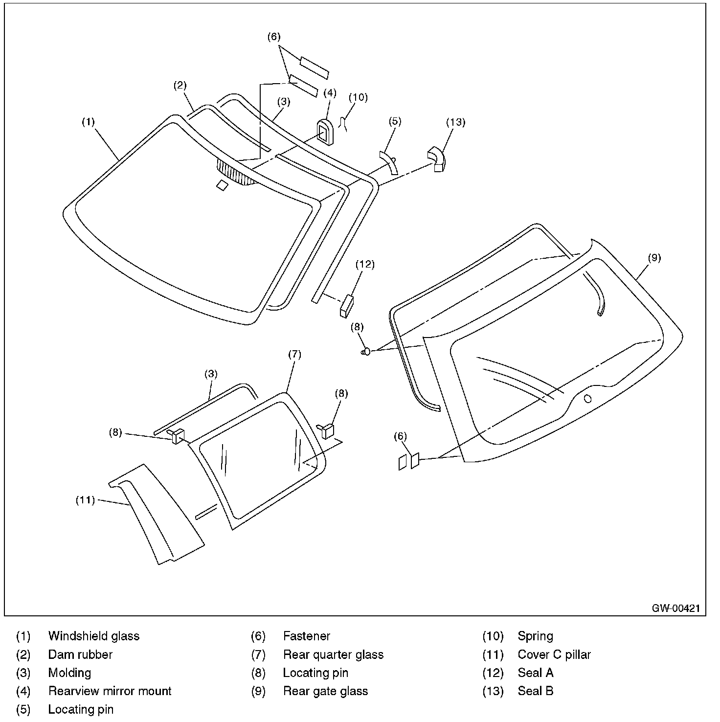 - For minimum drying time and vehicle standing time before driving after bonding, follow instructions or instruction manual from the adhesive manufacturer.