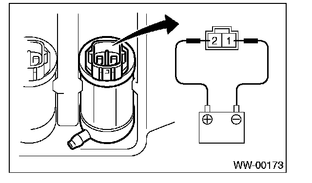 Apply battery voltage to the connector terminal of the washer motor and make sure the motor operates.