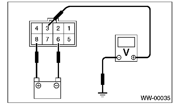 2. Connect the positive (+) probe from the battery to terminal 8 and the negative (-) probe to terminal 6. Connect the positive (+) probe from the voltage meter to terminal 3 and the negative (-) probe to the ground.