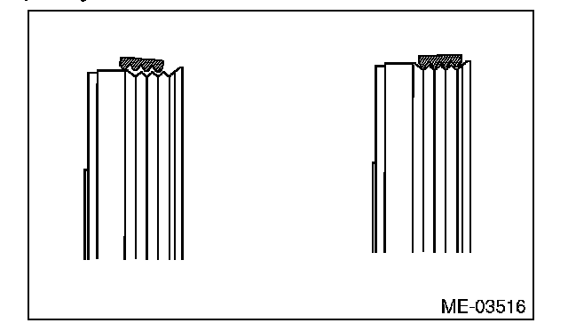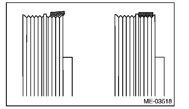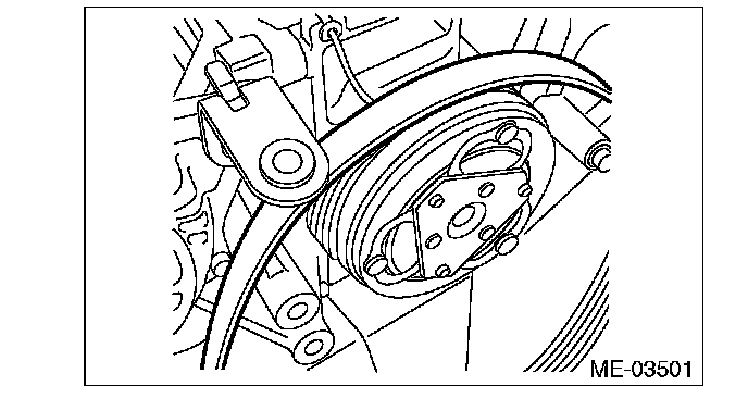 (1) The ribs of the rear side belt are properly riding on the grooves of the A/C compressor pulley.