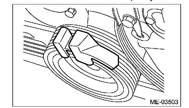 7) Insert the belt guide holder into the crank pulley service hole so as to clamp the belt guide.
