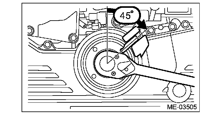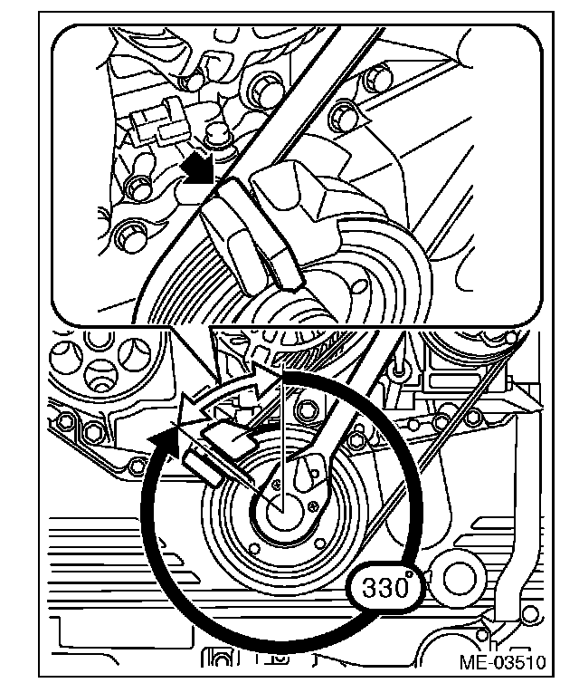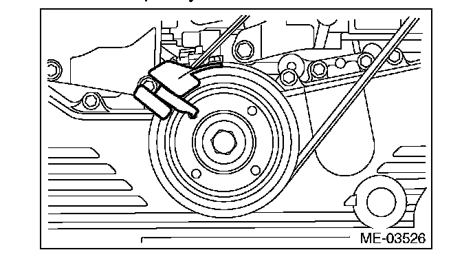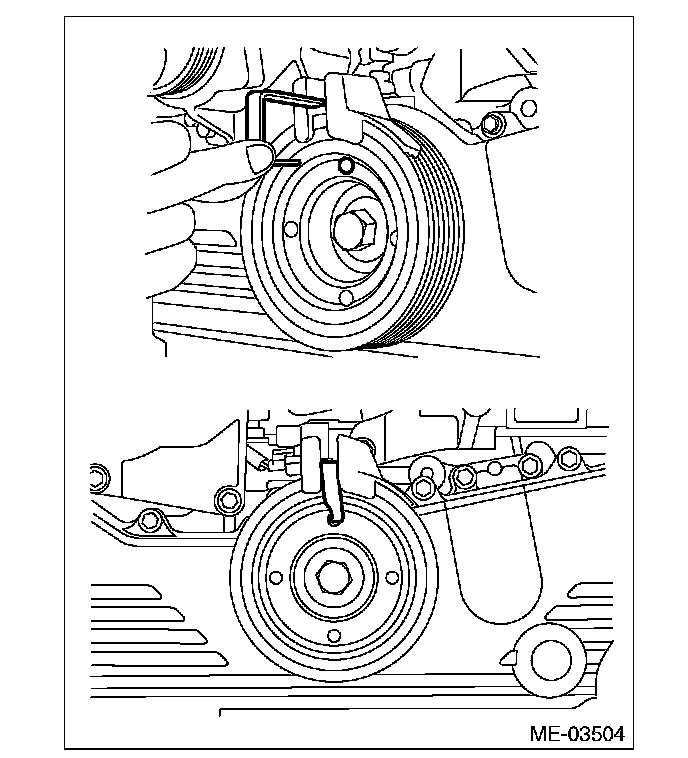 3) Turn the crank pulley to the right slowly, until the crank pulley service hole near the top.