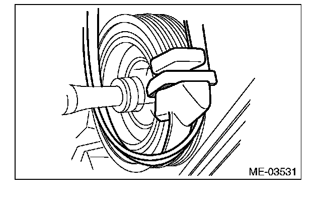10) Place the tool through the loop of the rear side belt, and set on the crank pulley bolt.