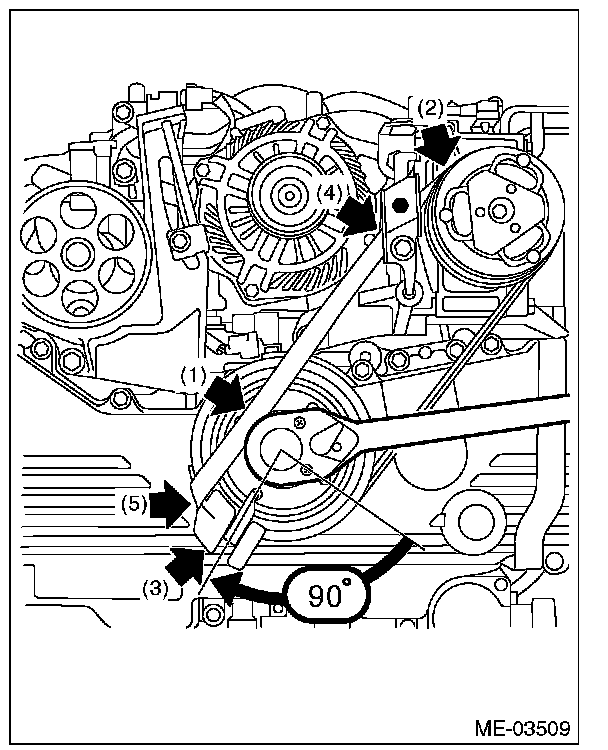 2) Check the front side belt tension and adjust it if necessary by changing the generator installing position.