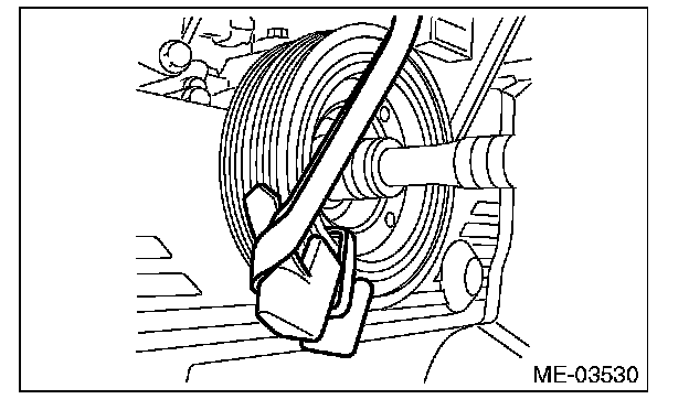 2) Wipe off any oil, water, mud or rust attached to the front side of the crank pulley with a cloth.