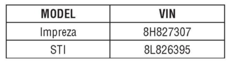 APPLICABILITY: 2008MY Impreza and Impreza STI