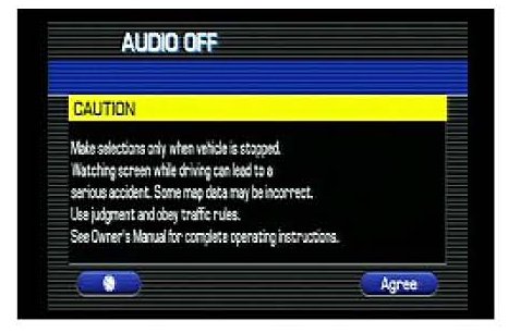 1) Turn the ignition switch to the Accessory position. Press power button so that the Start-up CAUTION screen is displayed.
