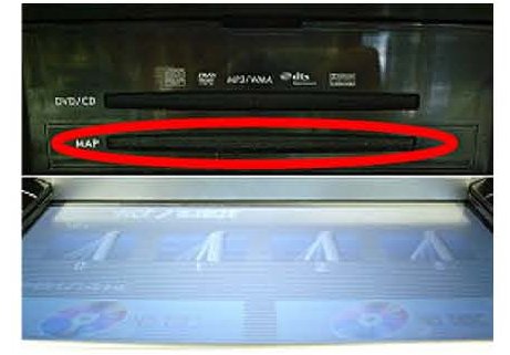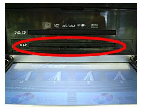 5) Remove the MAP disc and insert the Update disc in the MAP DVD loading slot.