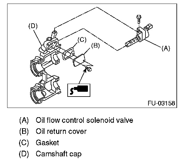 2. Apply liquid gasket to the two bolts which secure the oil return cover.
