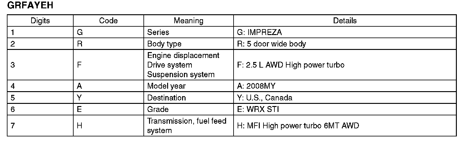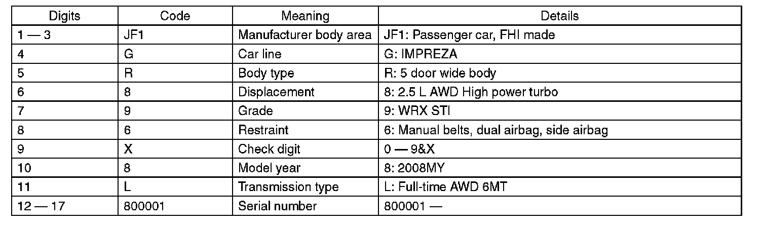 The meaning of the V.I.N. is as follows: