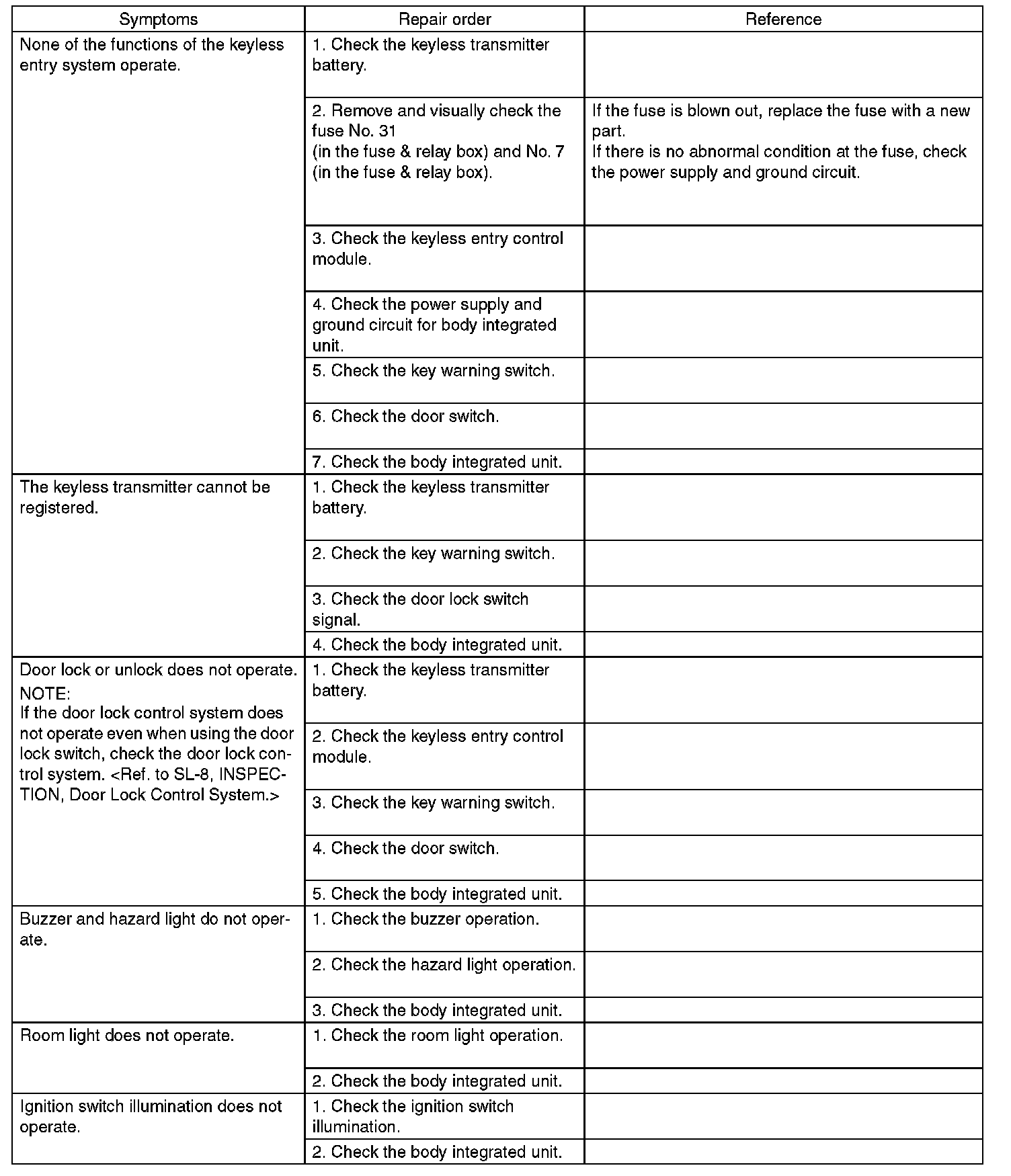 Refer to the door lock switch inspection of the door lock control system. Testing and Inspection