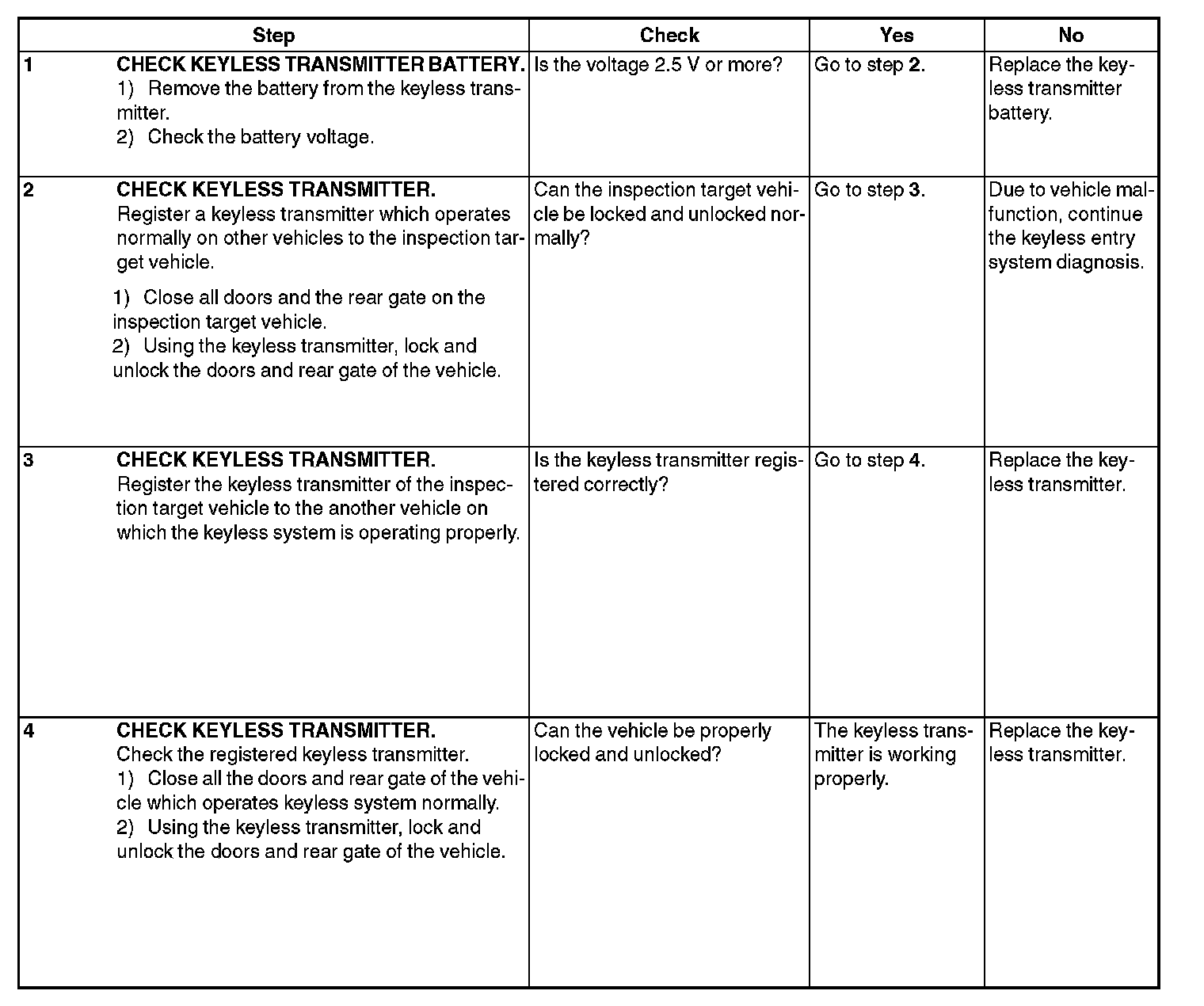 2. CHECK KEYLESS TRANSMITTER BATTERY AND FUNCTION