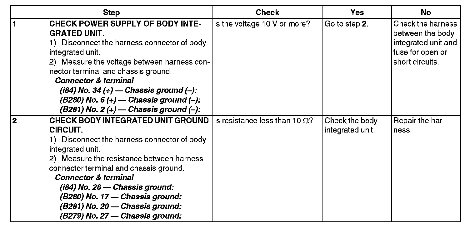 4. CHECK BODY INTEGRATED UNIT POWER SUPPLY AND GROUND CIRCUIT