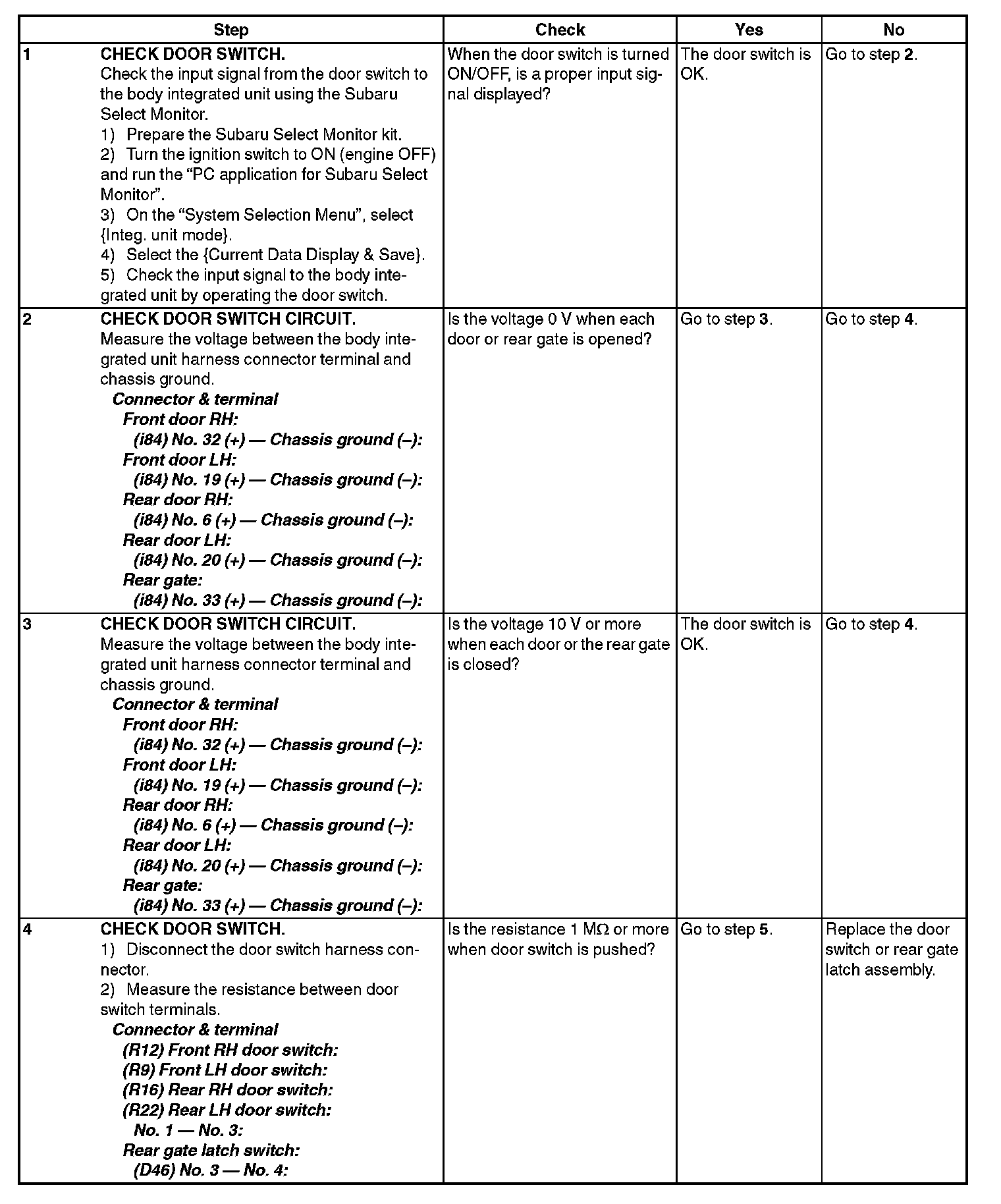 5. CHECK DOOR SWITCH