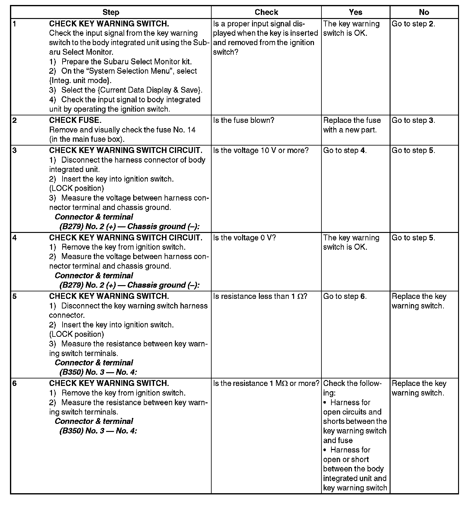 6. CHECK KEY WARNING SWITCH