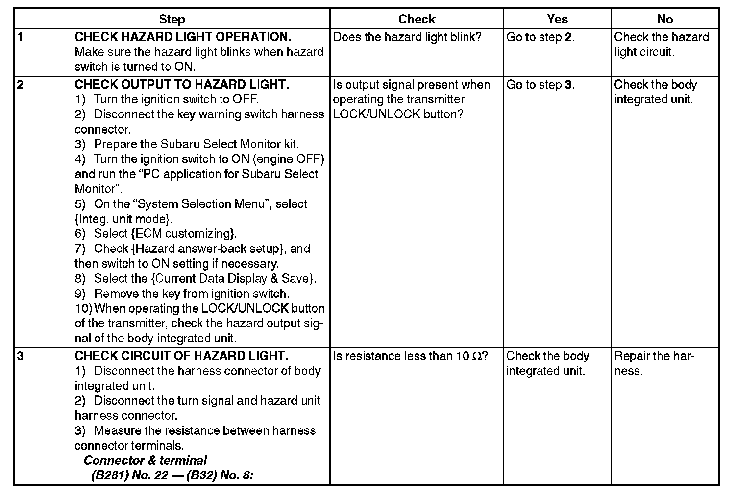 8. CHECK HAZARD LIGHT OPERATION