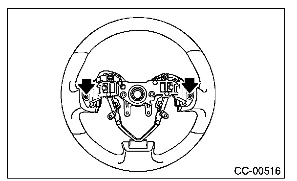 8. Remove the screw on the backside of the steering wheel to remove the cruise control command switch.