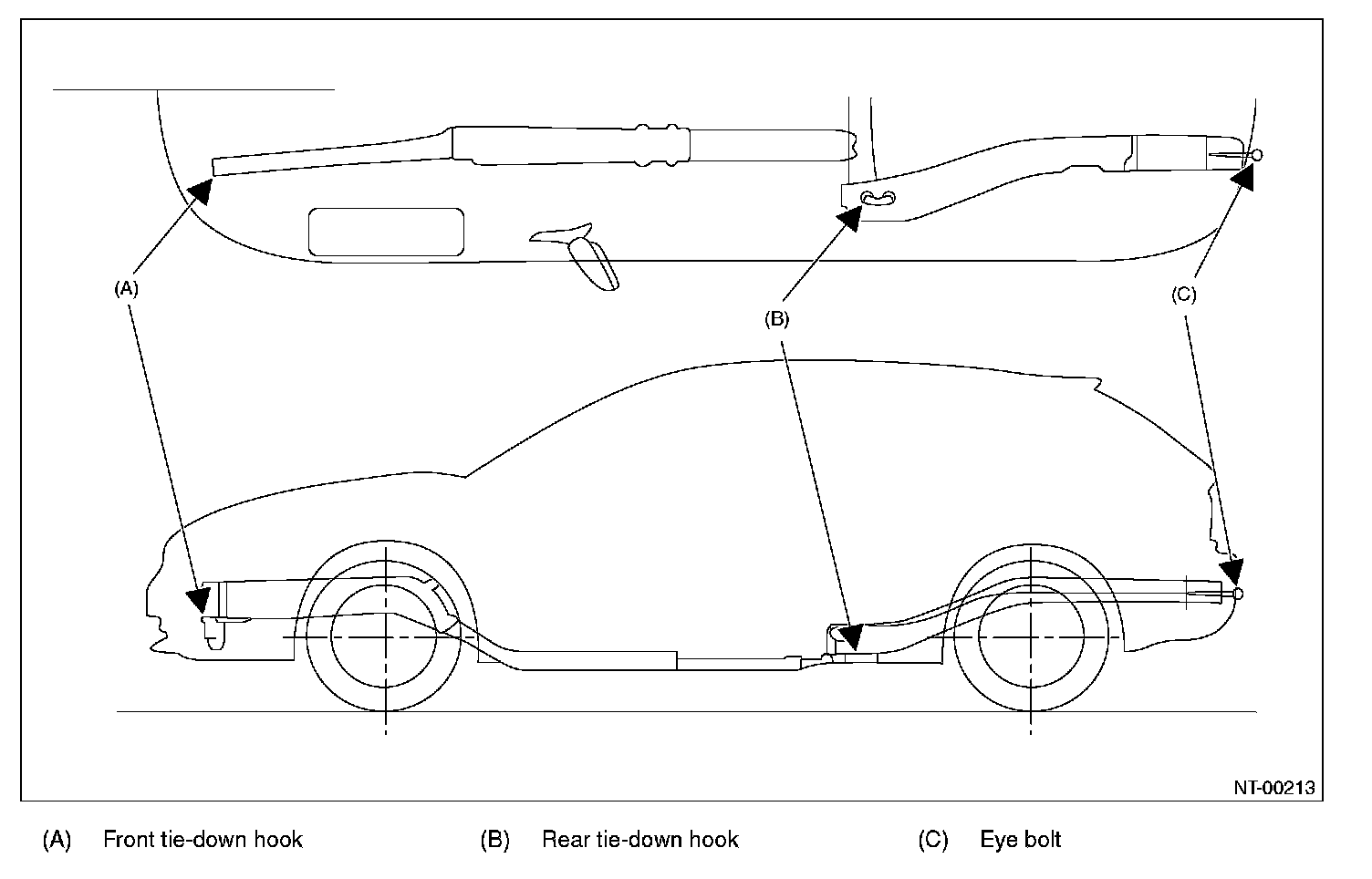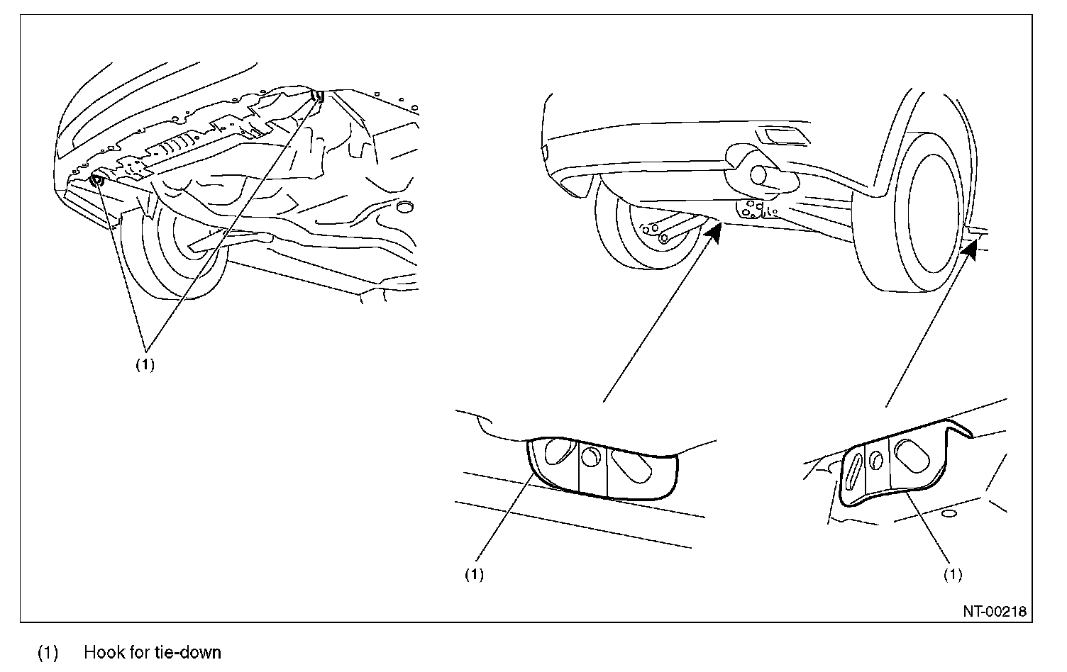 The tie-down hooks are used when transporting vehicles and when using the chassis dynamo. Attach tie-down only to the specified locations on the vehicle.