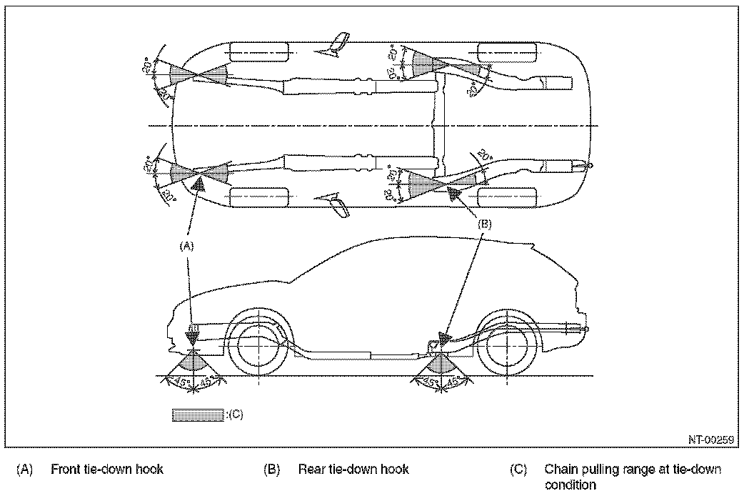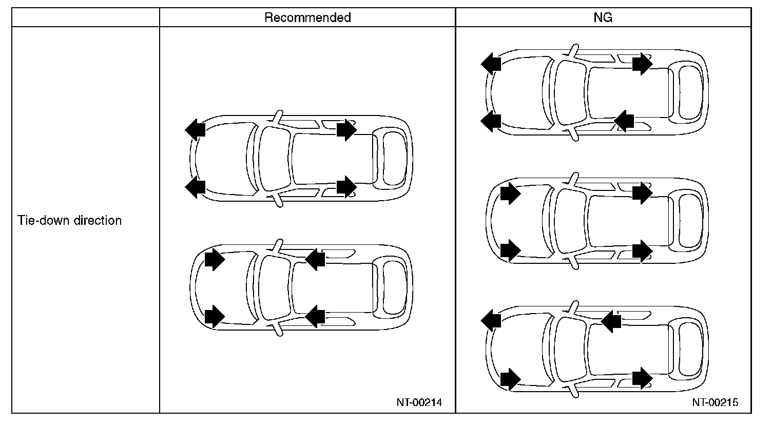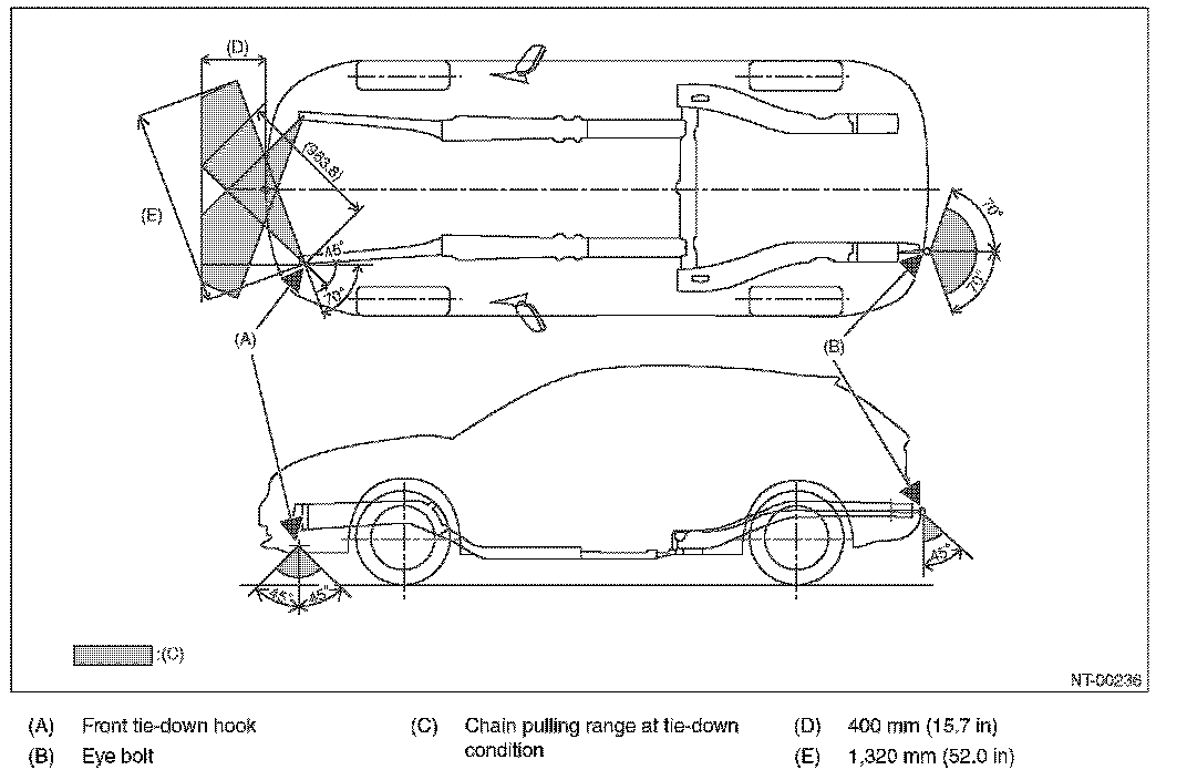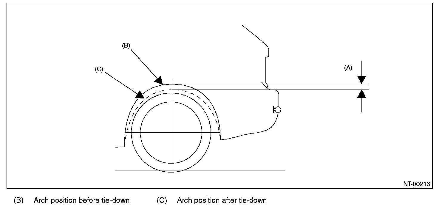 CAUTION: The vehicle sinking volume at tie-down condition should be less than 50 mm (1.97 in) and make sure to fix the vehicle securely.