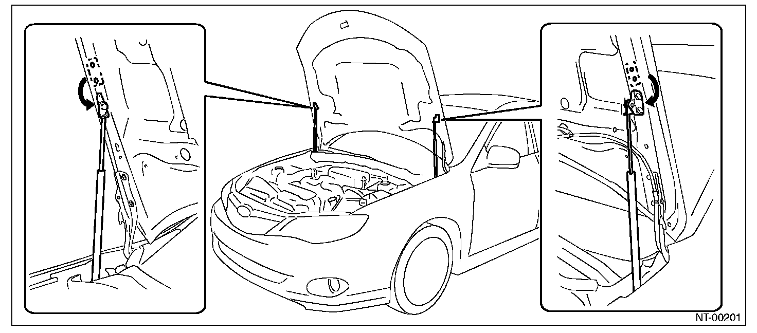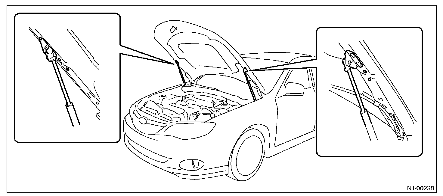 - Always perform works such as inspections and maintenance with both damper stays attached.