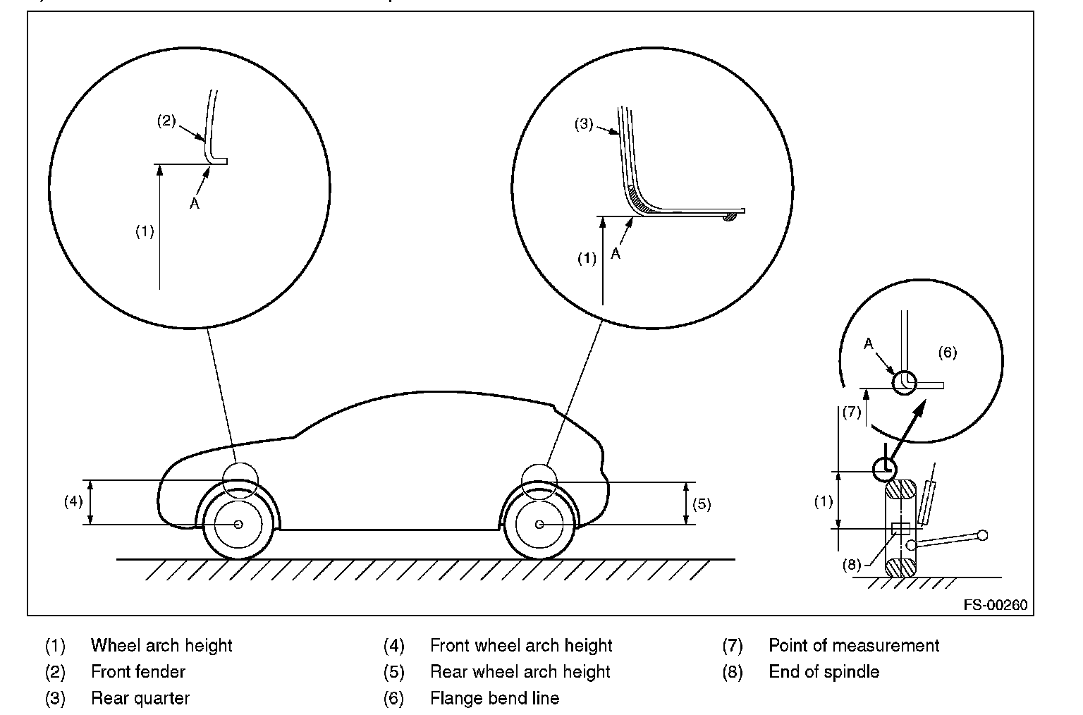 2) Place a mark at the center of both left and right tires, and measure distance "A" between the marks.