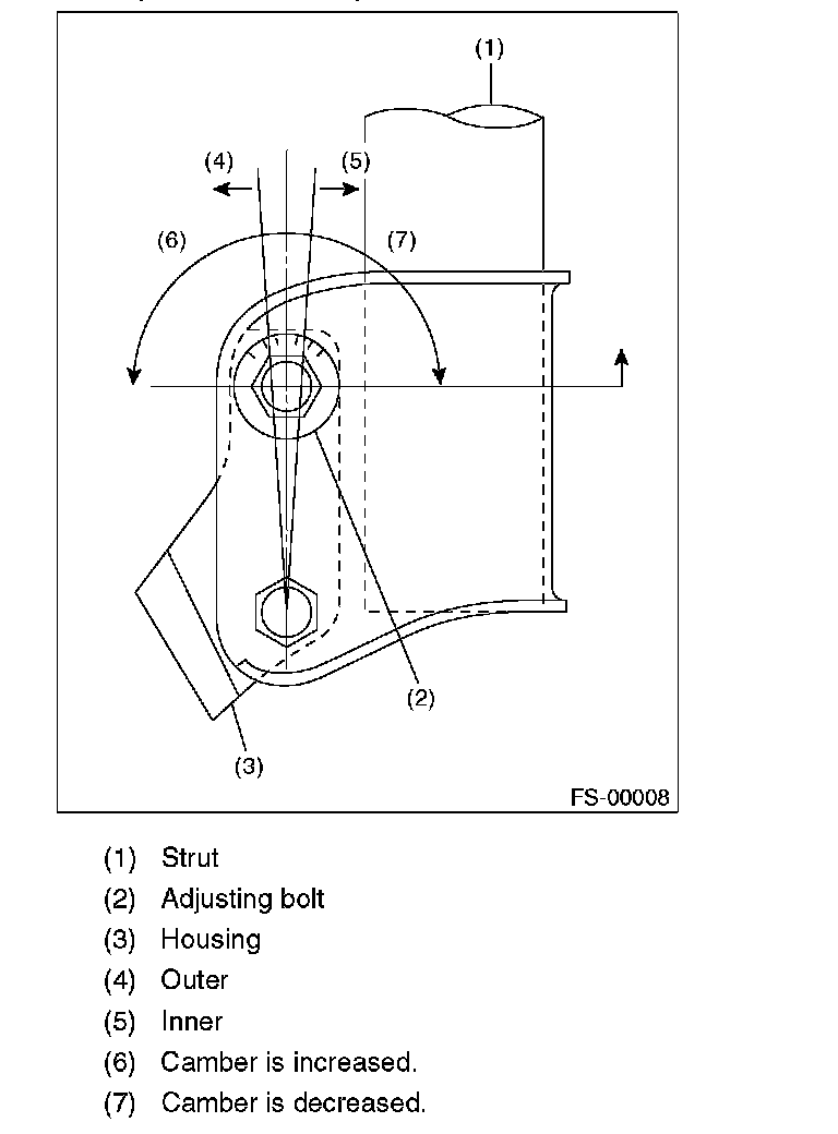 3) Turn the camber adjusting bolt so that the camber is set at specification.