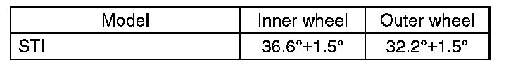 1) Check that the left and right wheel steering angles are within specification.