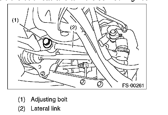 2) Turn the adjusting bolt until toe-in is within the specification.