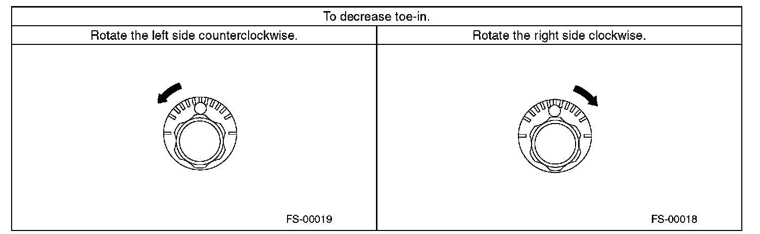 2) When one rear wheel is adjusted in a toe-in direction, adjust the other rear wheel equally in toe-out direction, in order to make the thrust angle adjustment.