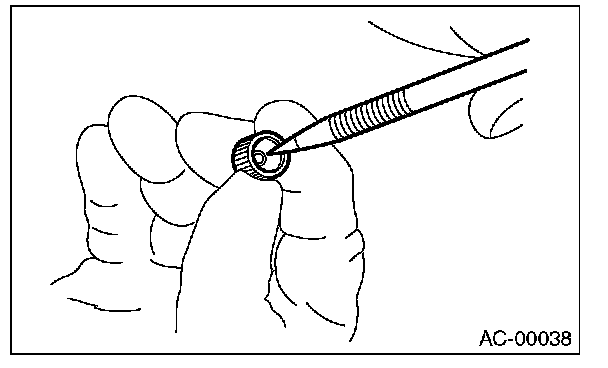 7. Check the compressor shaft seal at the area near the center of compressor clutch pulley. Shaft seals may show a slight amount of leakage, about 3 g (0.1 oz) per year. This is not a problem.
