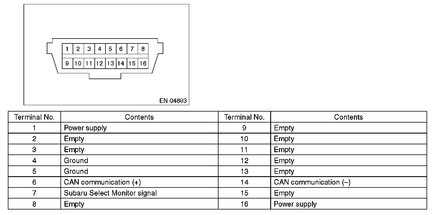 Data Link ConnectorNOTE: This connector is used for Subaru Select Monitor.