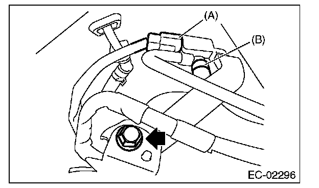 6. Disconnect the pressure hose from the fuel tank pressure sensor (B).