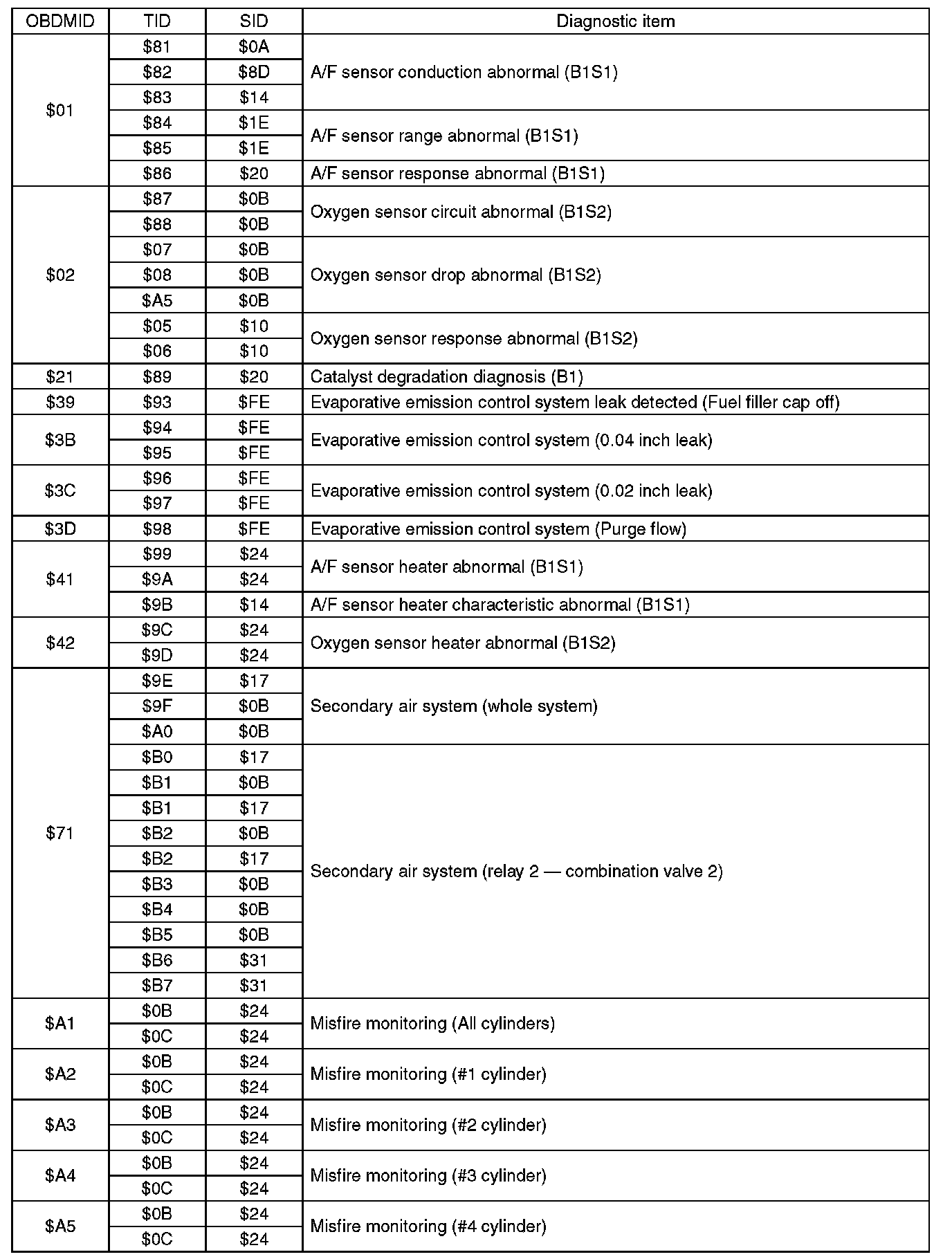 Refer to test value of troubleshooting and data of test limit indicated on the support data bit sequence table. A list of the support data is shown in the following table.