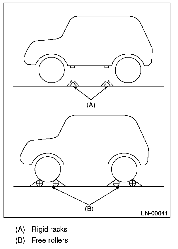 2. Lift up the vehicle using a garage jack and place it on rigid racks, or drive the vehicle onto free rollers.