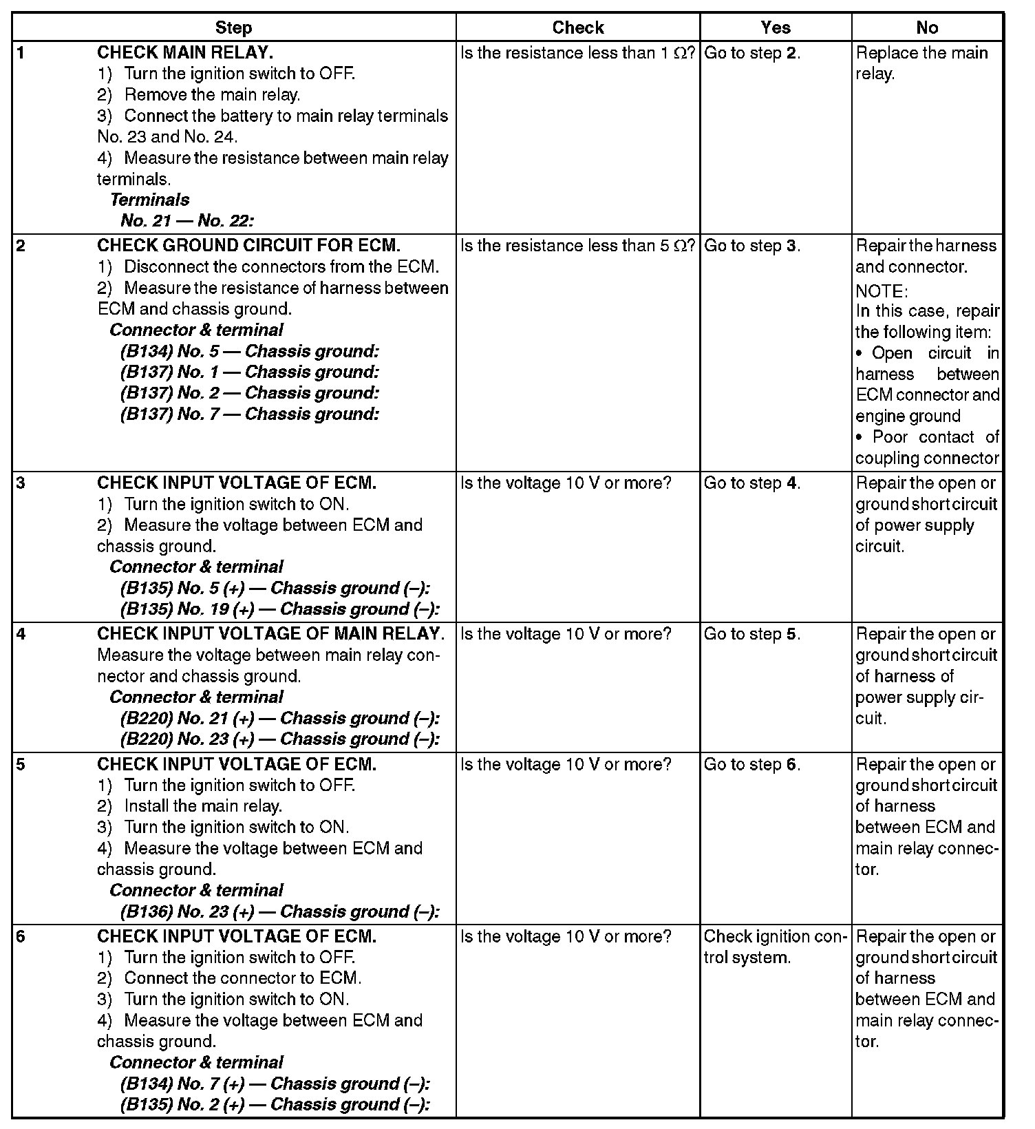 CHECK POWER SUPPLY AND GROUND LINE OF ENGINE CONTROL MODULE (ECM)