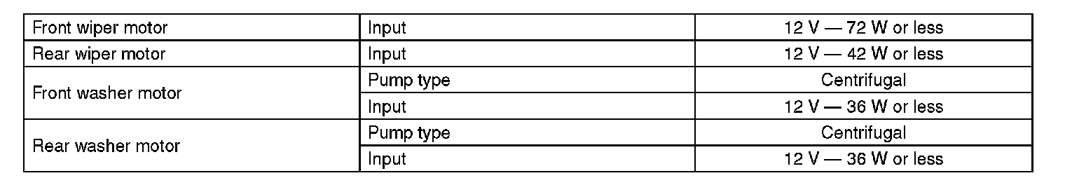 Wiper and Washer Systems: Specifications