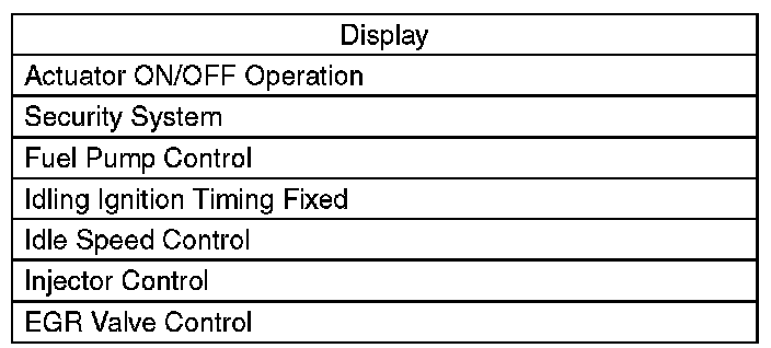 1. On the [[System operation check mode]] display screen, select the {Idle Speed Control}.