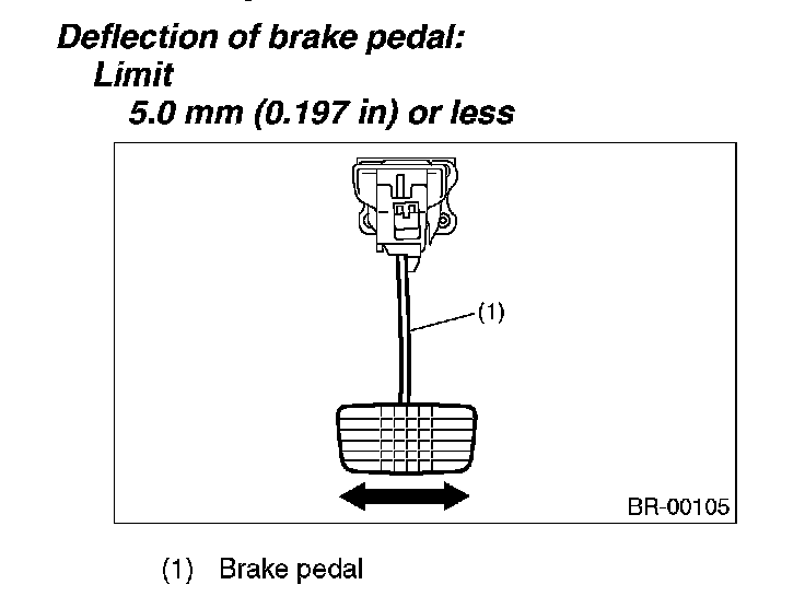 Deflection of brake pedal Limit: 5.0 mm (0.197 in) or less
