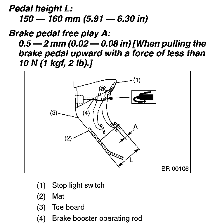 3) If it is not within the specification, adjust it by adjusting the brake booster operating rod length.