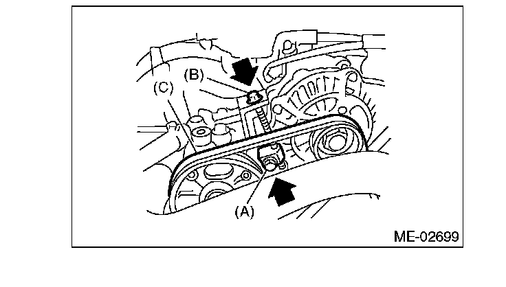 1) Install the front side belt (C), and tighten the slider bolt so as to obtain the specified belt tension.