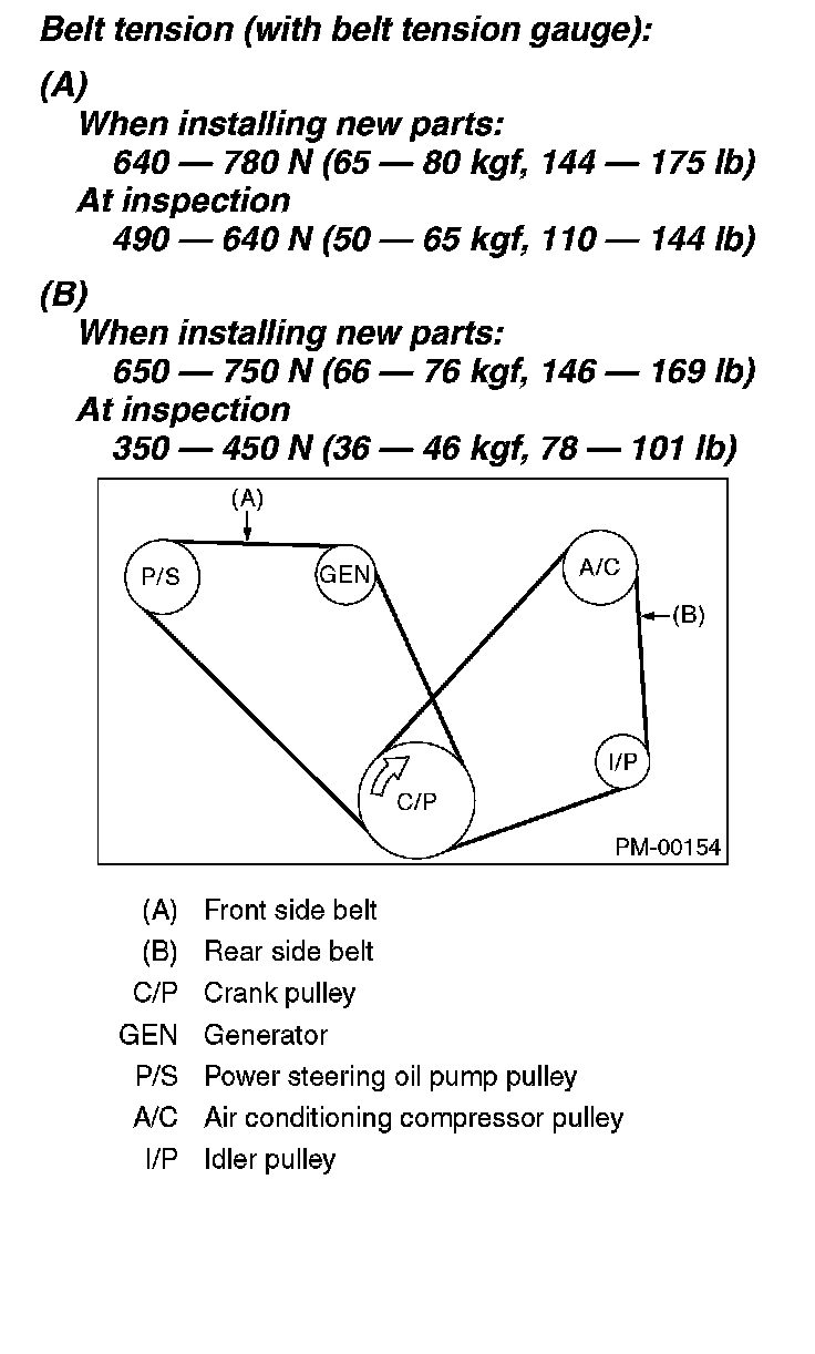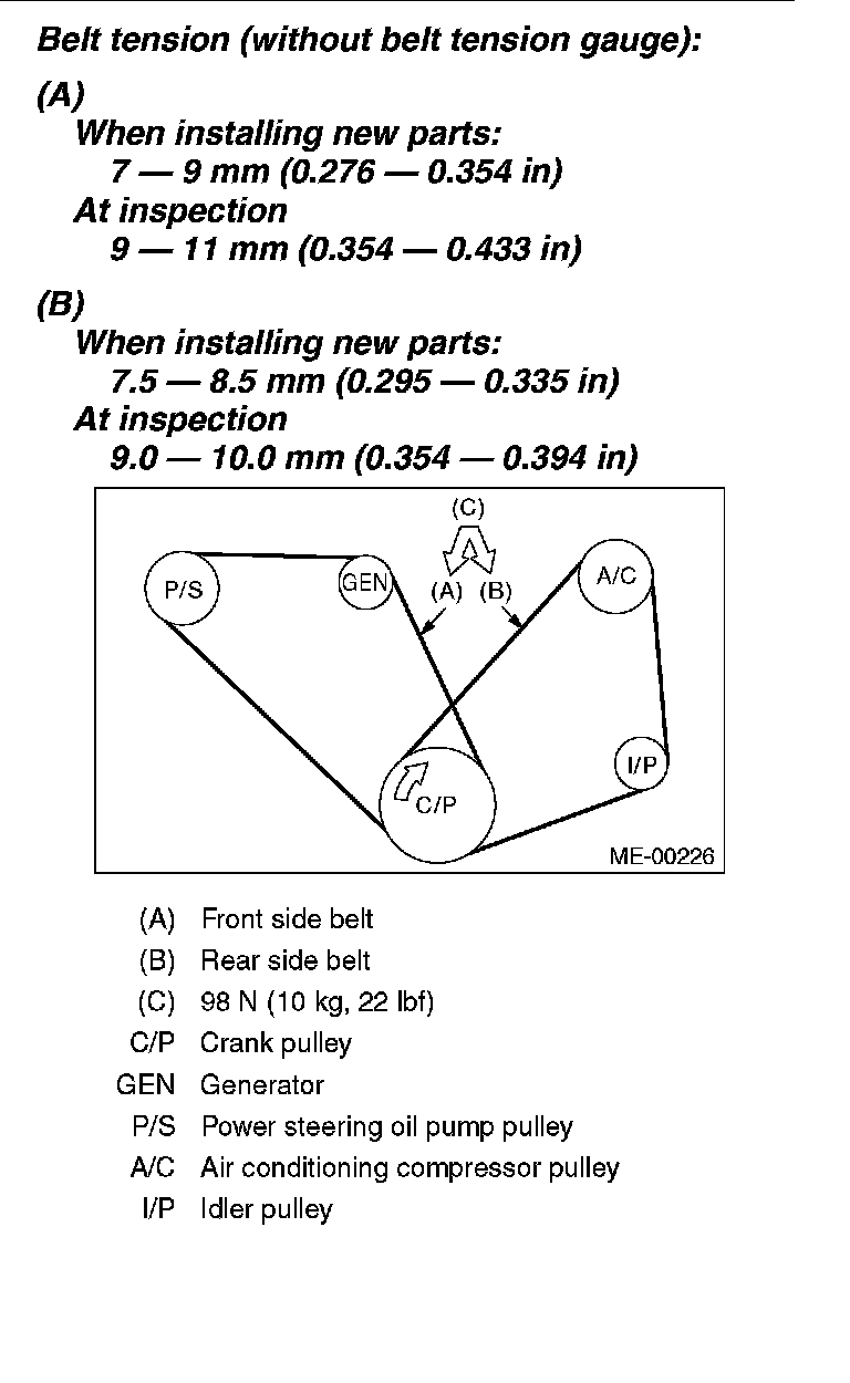 3) Check the V-belt tension and adjust it if necessary by changing the generator installing position or idler pulley installing position.