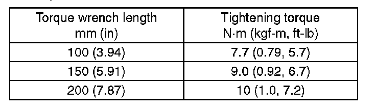 T1: 14 N-m (1.4 kgf-m, 10.1 ft-lb)