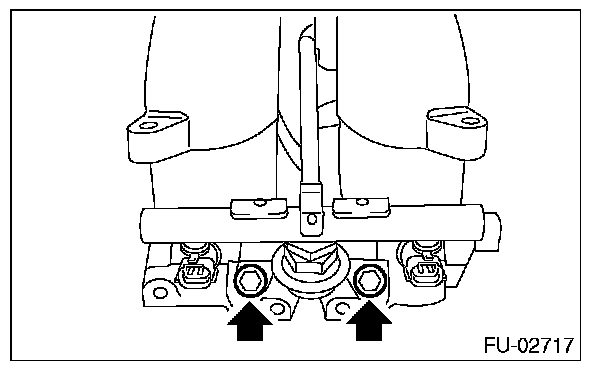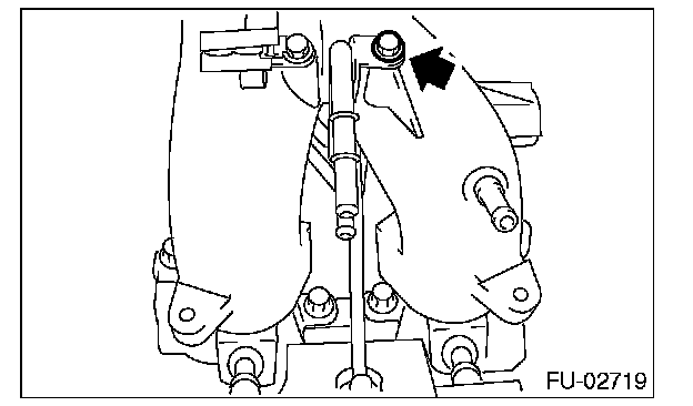 9. Remove the bolt which holds fuel injector pipe onto intake manifold.