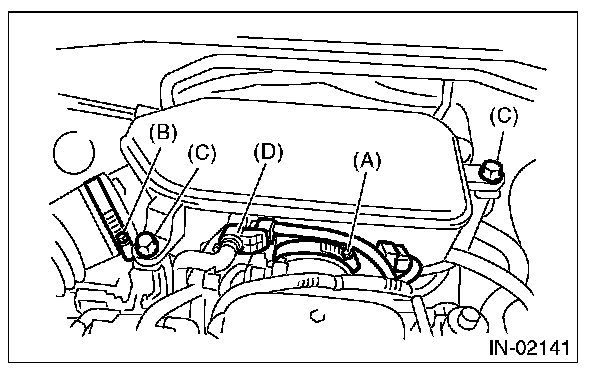 3. Remove the bolt (C) which secures air intake chamber to the stay.