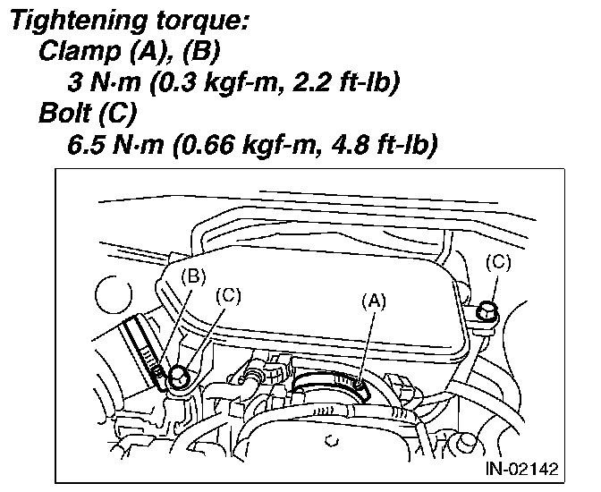 Clamp (A), (B): 3 N.m (0.3 kgf.m, 2.2 ft.lb)