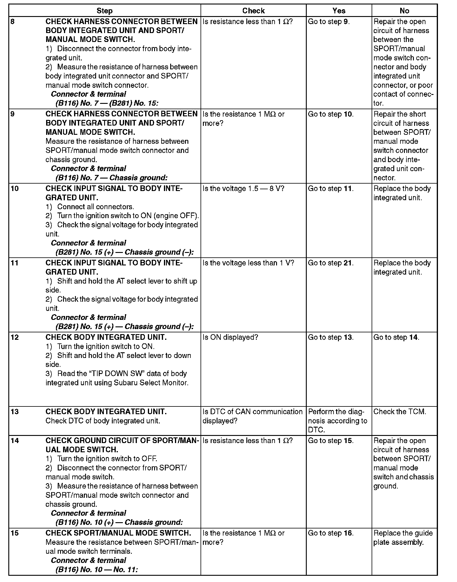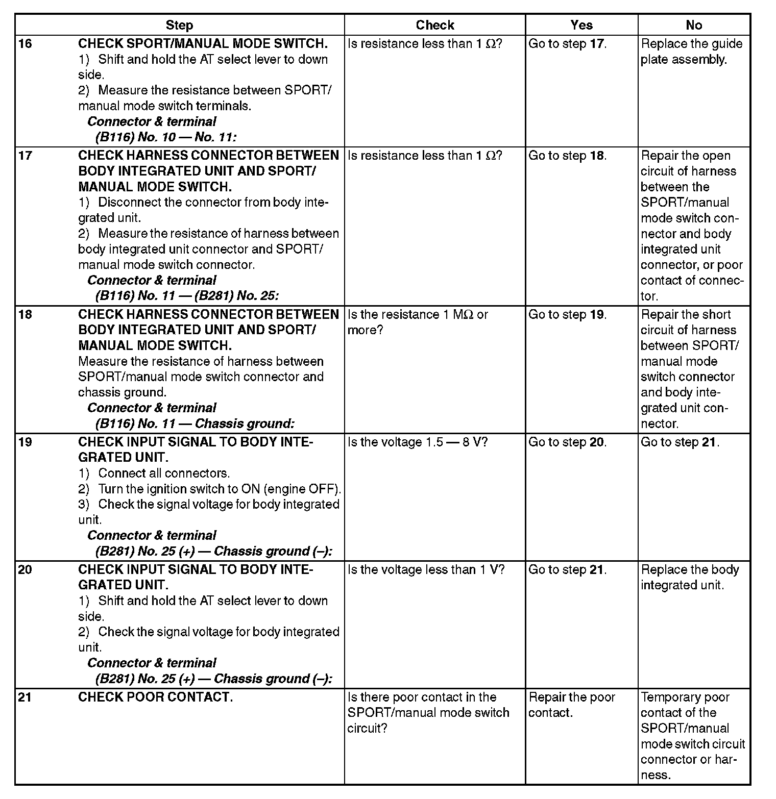 Input signal circuit of SPORT/manual mode switch is open or shorted.