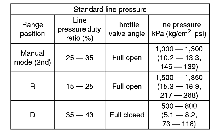 NOTE: If the clutch or brake shows a signs of slipping or shift feel is not correct, check the line pressure.