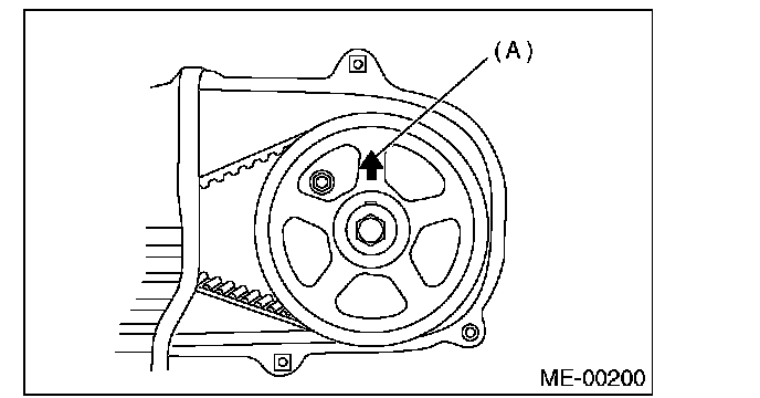 NOTE: When the arrow mark (A) on cam sprocket (LH) comes exactly to the top, #1 cylinder piston is brought to the top dead center of compression stroke.