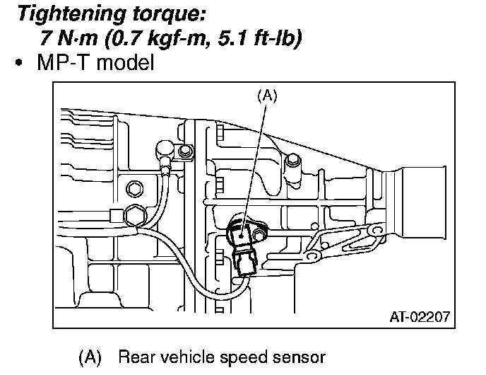 Tightening torque: 7 N-m (0.7 kgf-m, 5.1 ft-lb)