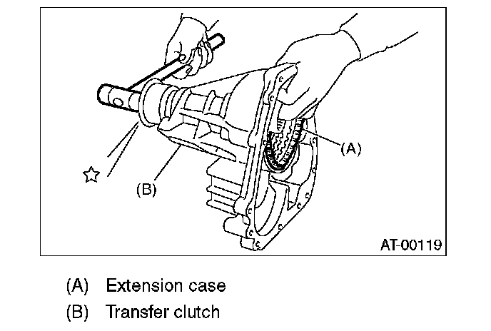 NOTE: Be careful not to damage the oil seal of the extension case.